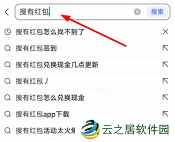 2、接着,在搜索栏内键入“搜索红包”并按下搜索按钮。