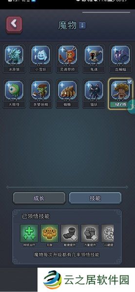 3、魔物携带:携带的是一只2级树妖,其技能为持续治疗和无敌。魔宠的品种和等级不是关键,最重要的是技能。理想情况下,携带一个无敌和一个治疗技能(快速治疗或持续治疗)就足够了。过多的技能会延长每个技能的释放时间,因此不必过分追求技能数量。如果2级魔宠就具备这两个技能,直接使用它们,其实比其他5、6级的魔宠更为实用。