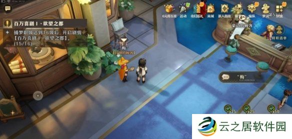 1、首先前往大厅,根据对话去走廊大厅找梅对话。