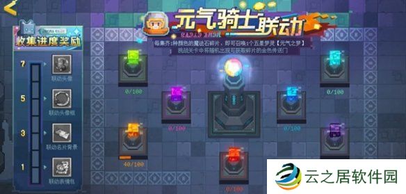 3、每集齐1种颜色的魔法石碎片,即可召唤1个五星梦灵“元气之梦”,挑战关卡中将随机出现可获取碎片的金色传送门。