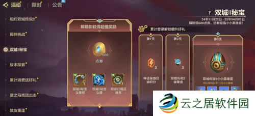 1、6元解锁双城2秘宝,解锁即可领取600点卷,获得双城秘宝头像框、头像和双城幻境召唤券。