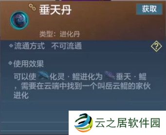垂天丹这个道具是最新上线的,是为了庆祝元宵节而存在的道具,玩家们可以使用这个道具来让岳云鲲进化成垂天鲲。