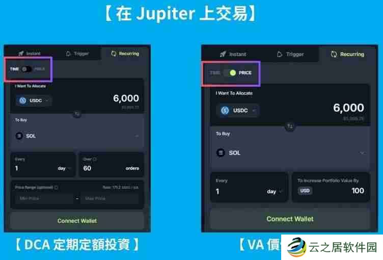 3. DCA & VA:链上定投与价值平均法: Jupiter提供DCA(定期定额投资)和VA(价值平均法)两种智能投资工具,帮助用户降低市场波动风险,实现长期稳定投资。