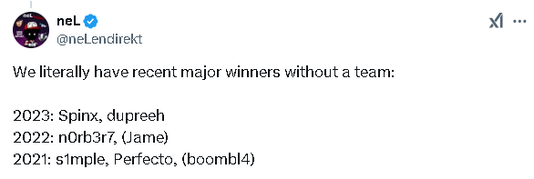 “我们有一些近年来夺得过Major冠军但现在却没有队伍的选手: