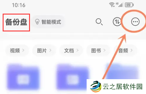 - 进入阿里云盘的“备份盘”。点击右上角的更多选项菜单(通常显示为三个垂直点)。
