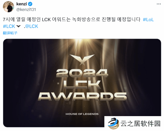 随后韩国电竞博主Kenzi表示,原定于今天举办的2024 LCK Awards活动取消,颁奖典礼将以录播的形式播出,具体播出时间未知。