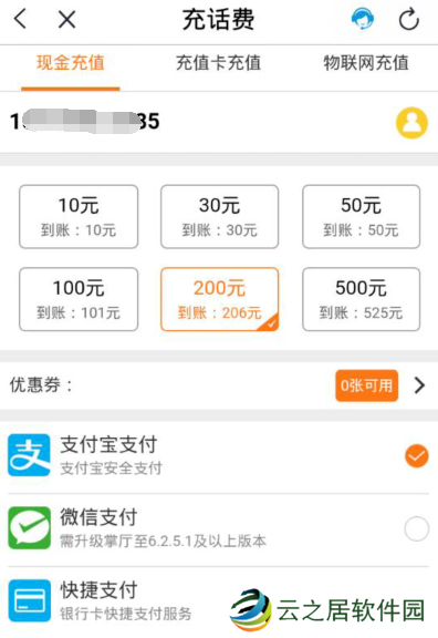 打开APP后,在首页中间的快捷入口区域,找到“充话费”图标并点击进入。 系统默认使用现金充值,如有充值卡,请选择相应选项。此处以现金充值为例,充值号码默认为当前登录用户的号码。