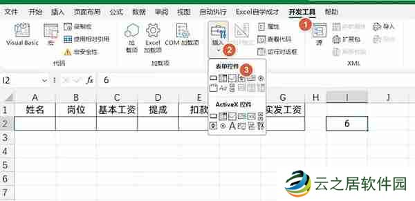 - 在任意单元格(例如I2)输入一个初始数字(例如1)。在“开发工具”选项卡(如果未显示,请在“文件”>“选项”>“自定义功能区”中启用),点击“插入”,选择“窗体控件”中的“数值调节”。在工作表上绘制一个数值调节按钮。右键点击按钮,选择“设置控件格式”。在“控件”选项卡中,将“单元格链接”设置为I2单元格。
