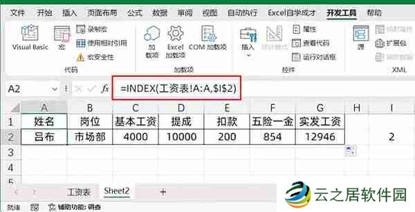 假设您的员工工资数据在名为“工资表”的工作表中。 I2单元格的值代表要提取的员工行号。