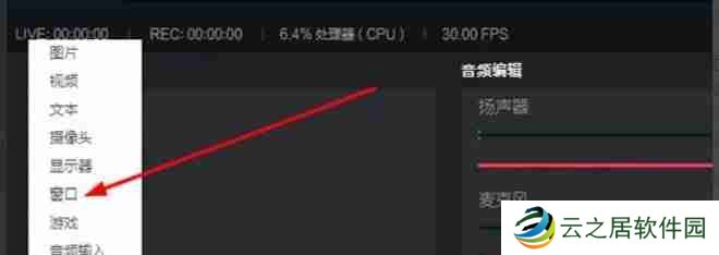 第二步:点击直播伴侣主界面左下角的“添加内容”按钮,然后选择“窗口”。