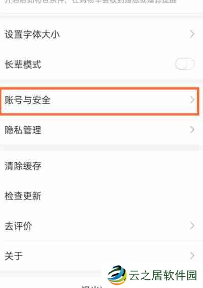 在设置页面中,找到并点击“账号与安全”选项。