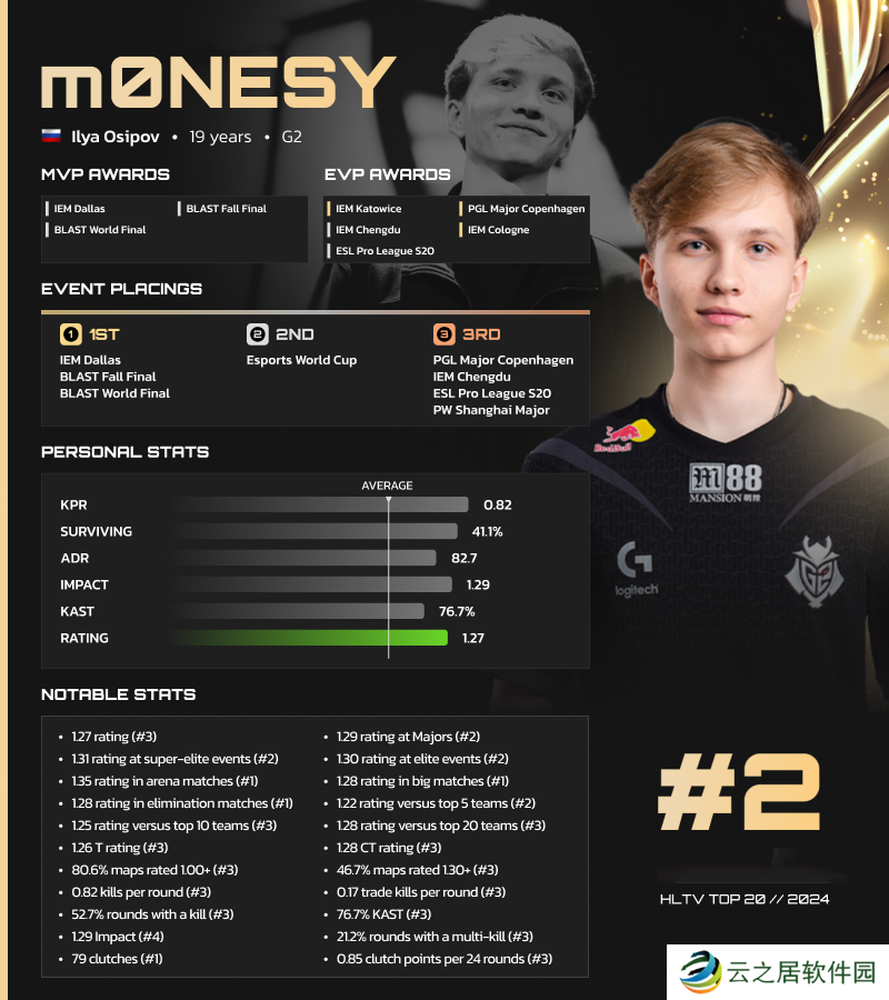 HLTV 2024年度最佳选手TOP2:m0NESY