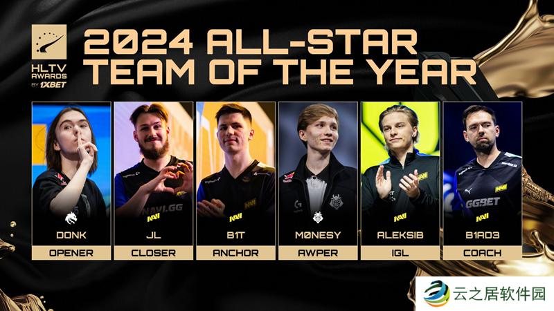 HLTV在2024颁奖典礼上公布了年度全明星队伍的阵容,可谓是相当豪华。