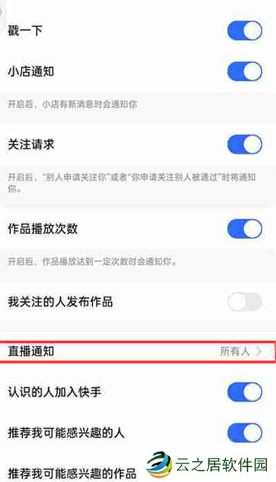在通知设置页面,找到“直播通知”选项,选择“所有人”即可开启所有直播的通知提醒。