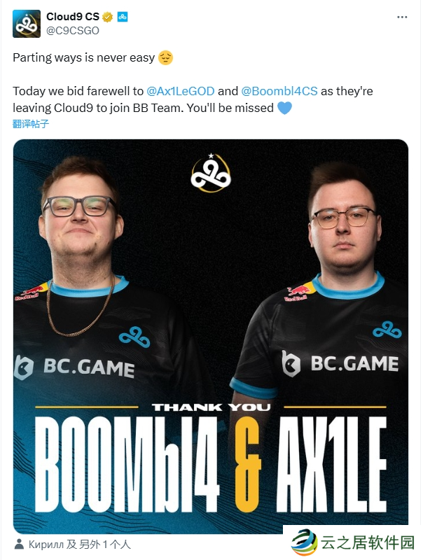 刚刚Cloud9战队正式宣布了这一消息:Boombl4和Ax1Le将离开Cloud9加入BB战队。