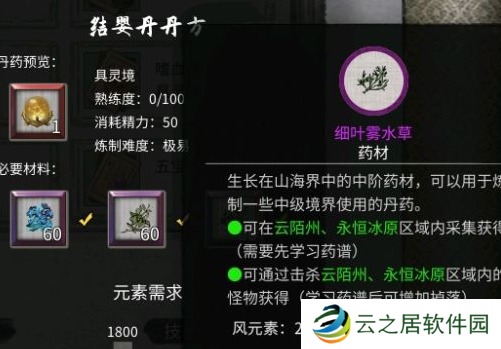 17、云中丹:千叶露×50、山参×50、长脑参×40。