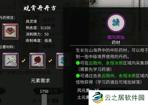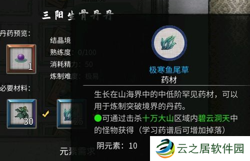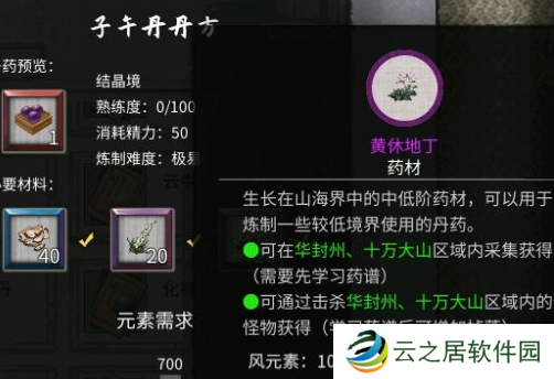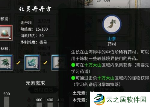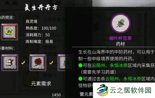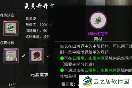 14、培元丹:玄灵液×50、大蓟根茎×30。