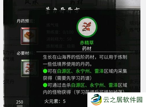 15、蓄力丹:赤精草×50、青须藤×30。